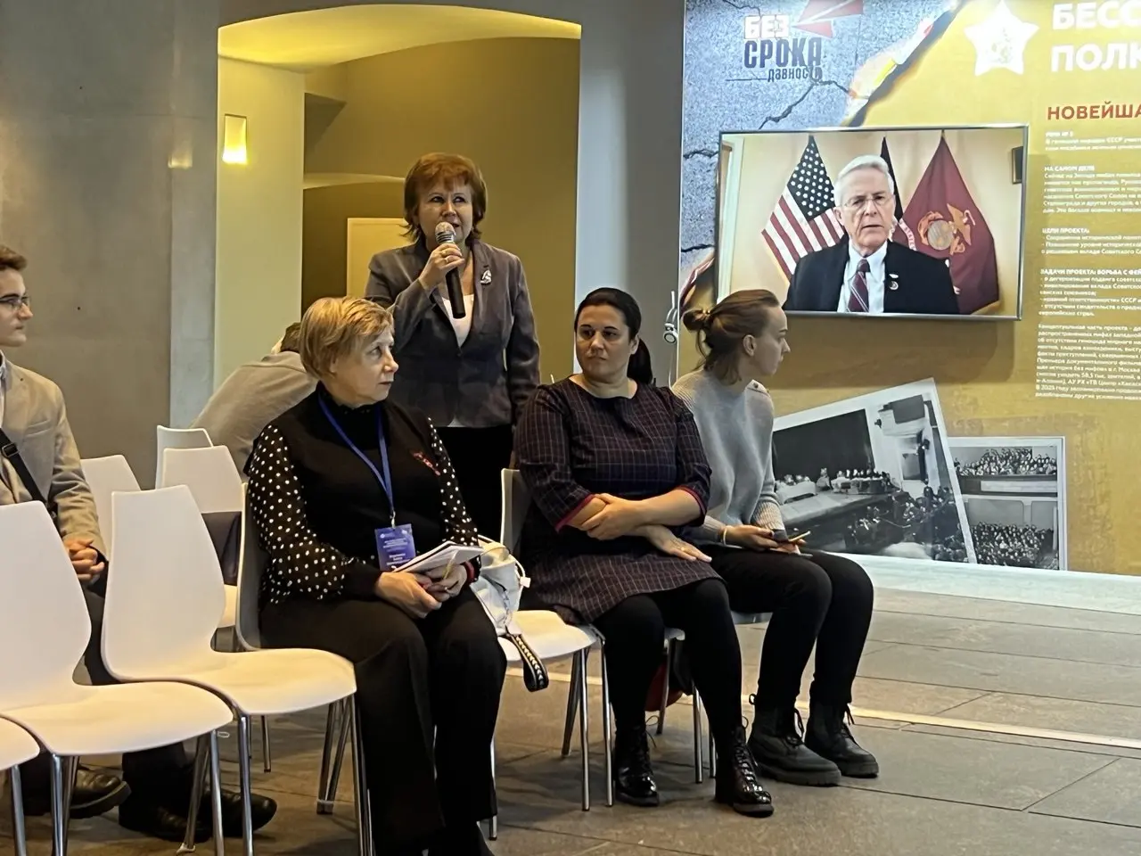 Педагоги и обучающиеся образовательных организаций Санкт-Петербурга и Ленинградской области поделились опытом участия в конкурсных мероприятиях проекта «Без срока давности», отметив высокий уровень методической поддержки со стороны МПГУ. К участникам обратилась бывшая узница нацистских концлагерей Любовь Платонова, которая рассказала о своей просветительской работе с молодёжью, поделилась воспоминаниями о геноциде советского народа, свидетелем которого она была.