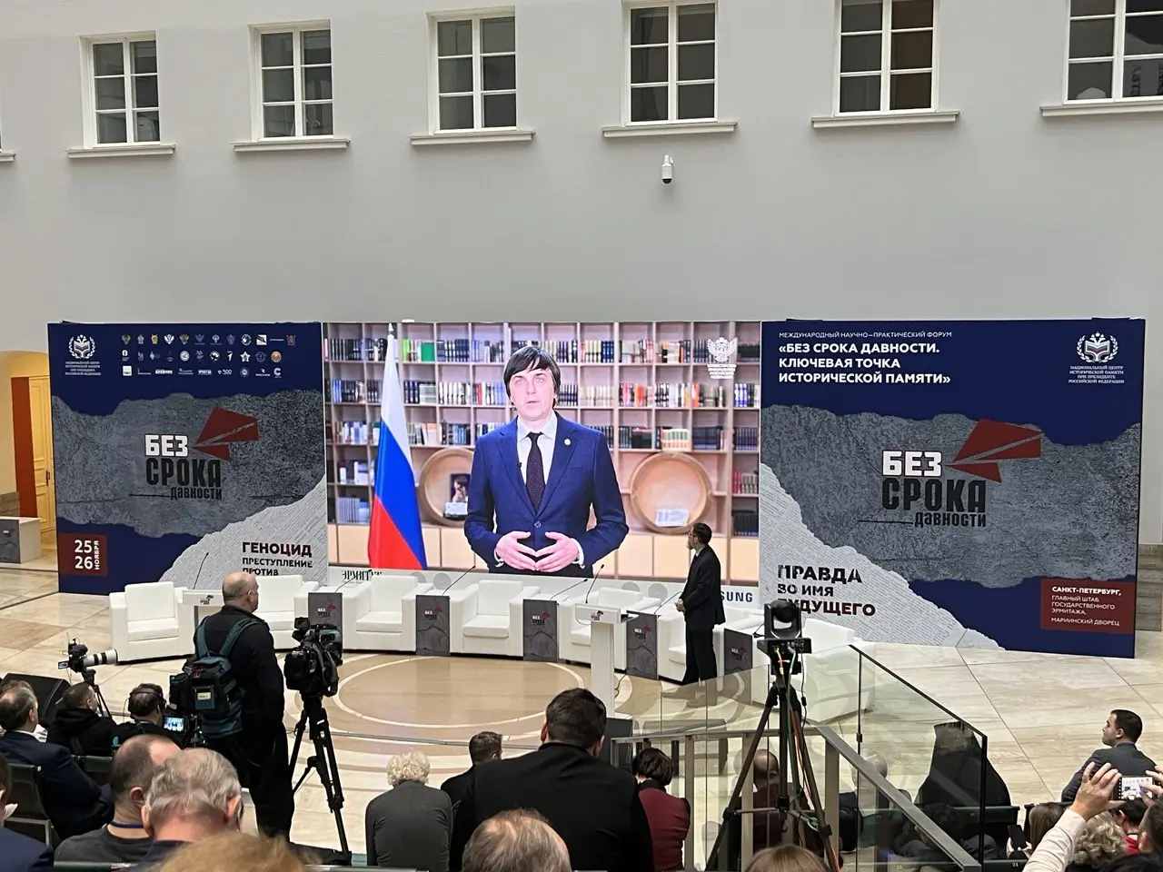 С 25 по 26 ноября 2024 г. Министерство просвещения Российской Федерации и Московский педагогический государственный университет принимали участие в работе Международного научно-практического форума «Без срока давности. Ключевая точка исторической памяти» в г. Санкт-Петербурге. Мероприятие является логическим продолжением масштабных форумов «Без срока давности», которые уже стали традиционными уникальными площадками межведомственной и профессиональной коммуникации по выработке единой общественной концепции сохранения исторической правды о важнейших событиях нашей истории. В 2024 г. организатором Форума выступил Национальный центр исторической памяти при Президенте Российской Федерации, а среди партнёров - Министерство просвещения Российской Федерации.