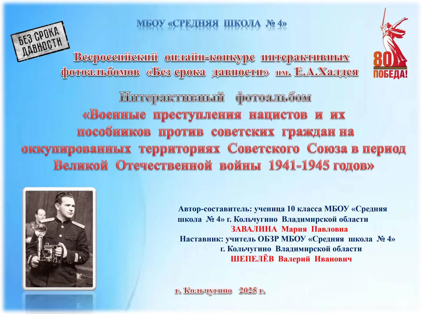 С 2024 года Московский педагогический государственный университет выступает федеральным оператором Всероссийского онлайн-конкурса интерактивных фотоальбомов «Без срока давности» имени Е.А. Халдея. Организационное и методическое сопровождение конкурса обеспечивается Управлением общественных проектов МПГУ. Целью конкурса является поддержка совместной поисковой, исследовательской деятельности обучающихся и педагогических работников, направленной на сохранение исторической памяти о военных преступлениях, зафиксированных в фотодокументах и отображенных в творческих работах обучающихся, совершенных нацистами и их пособников в годы Великой Отечественной войны 1941–1945 гг., а также украинскими неонацистами.