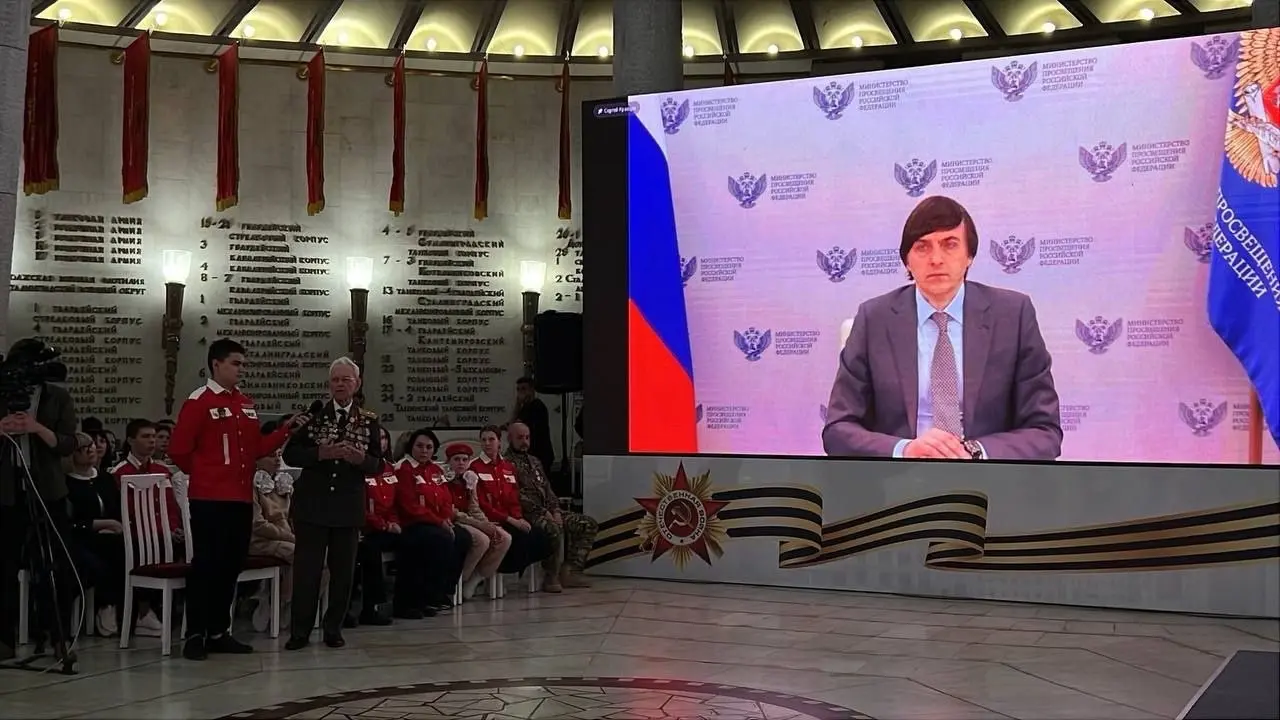 К участникам встречи поколений победителей в формате видео-конференцсвязи обратился Министр просвещения РФ Сергей Кравцов.