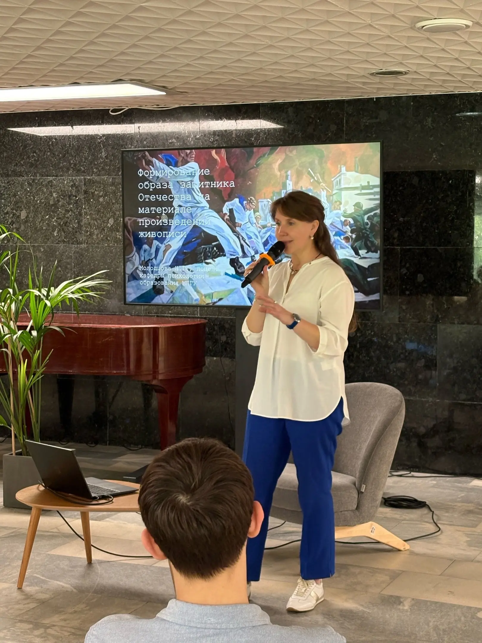 22 апреля в рамках реализации МПГУ образовательно-просветительских мероприятий проекта «Без срока давности» кафедрой психологии образования Института педагогики и психологии совместно с Управлением общественных проектов МПГУ и при поддержке Управления воспитательной работы и молодёжной политики МПГУ в Третьяковской галерее для студентов университета был проведён мастер-класс «Формирование образа защитника Отечества на материалах произведений живописи».