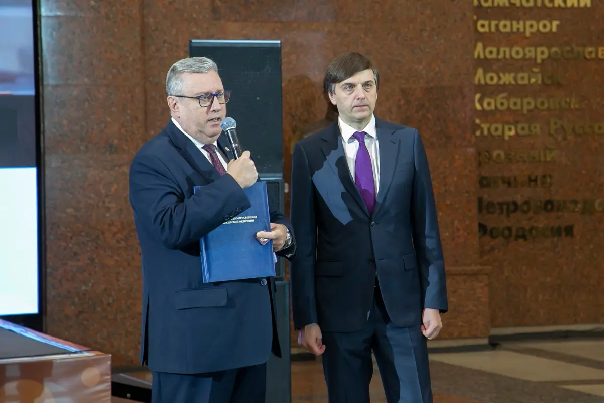 В завершении церемонии Сергей Кравцов поблагодарил организаторов за проделанную работу и вручил Алексею Лубкову ведомственный знак Министерства просвещения Российской Федерации «За содействие».